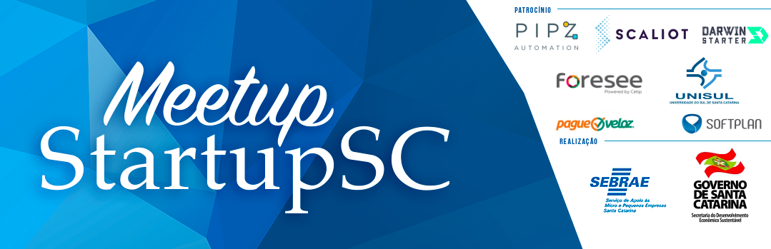 A 22ª segunda edição do Meetup StartupSC é realizada pelo Sebrae/SC e pela Secretária de Desenvolvimento Econômico Sustentável. Os patrocinadores do evento são Pipz Automation, Softplan, ScalIOT, Darwin Starter, Foresee, Unisul e Pague Veloz.