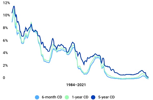 Analisando o gráfico histórico das taxas de certificados de depósito nos Estados Unidos – título comparável às taxas CDI no Brasil – e comparando com o gráfico de inflação no período já apresentado anteriormente, notamos que em meados dos anos 80 os Estados Unidos apresentavam ganhos reais de mais de 10% investindo em títulos extremamente seguros.